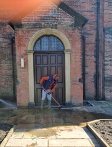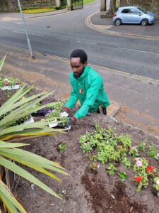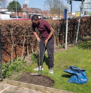 Even through these hard years, I have stayed active in my community. I volunteer with the British Red Cross, helping to set up and tidy at drop-in sessions for refugees. I also help at St Mary in the Baum Church, supporting cleaning and gardening, and I take part in environmental projects through the Blue Team Volunteers, such as litter picking and tree planting. I attend the Friendship Group and ESOL classes with Rochdale Council, where I continue improving my English and helping others.