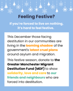 We have launched our festive fundraiser, inviting people to show solidarity, love and care to our friends and neighbours forced into destitution, by donating to MDF. Donate at: www.migrantdestitution.co.uk/donate Please share widely on Instagram, Bluesky and Facebook